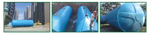 玻璃鋼化異池內(nèi)部設(shè)有隔板,隔板上的過水孔上下錯位,形成旋流,避免短路,延長了 污水的實際停留時間,同時隔板將罐體分成多個部分。使污水與微生物的接觸面積和時間得 到了極大的増加,提高反應(yīng)效率,使化糞池內(nèi) 的固體和液態(tài)有機(jī)物被去除,使污泥減量化、 無害化。 |